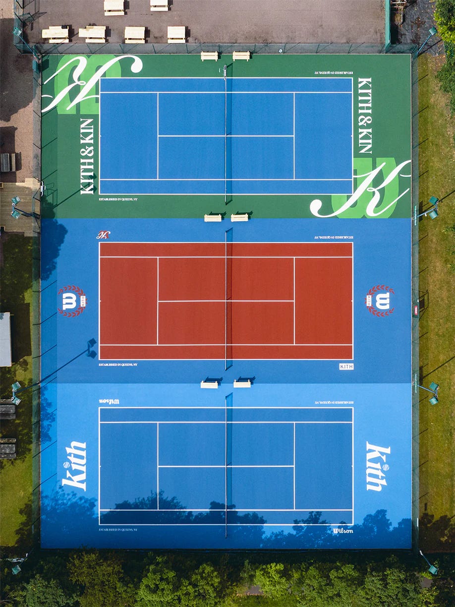 "Kith reprised its partnership with Wilson to create an elevated tennis collection for men and women, blending the performance and lifestyle sensibilities of each brand,” Kith said in a statement on the collaboration. "This collection comprises on and off-court apparel, accessories and equipment that features Kith for Wilson branding and artwork. Wilson’s performance technology is infused with on-court silhouettes and Kith’s lifestyle lens elevates the design of the full collection.”